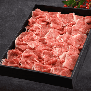 厳選された福井県産若狭牛のもも・肩肉を使用しており、赤身肉特有の深い旨味が特徴です。すき焼き肉として最適な切り方で提供しており、赤身肉本来の濃厚な味わいを存分に楽しみたい方におすすめです。